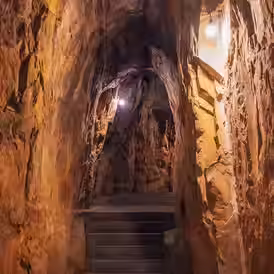 A beautiful pair of caves featuring both impressive stalactites and prehistoric engravings of animals.